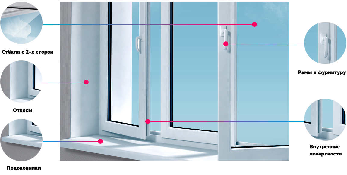 2 раза в год приедет клинер вымоет стёкла с обеих сторон, очистит рамы внутри и снаружи. Также протрёт подоконники и откосы, дополнительно помоет москитные сетки.